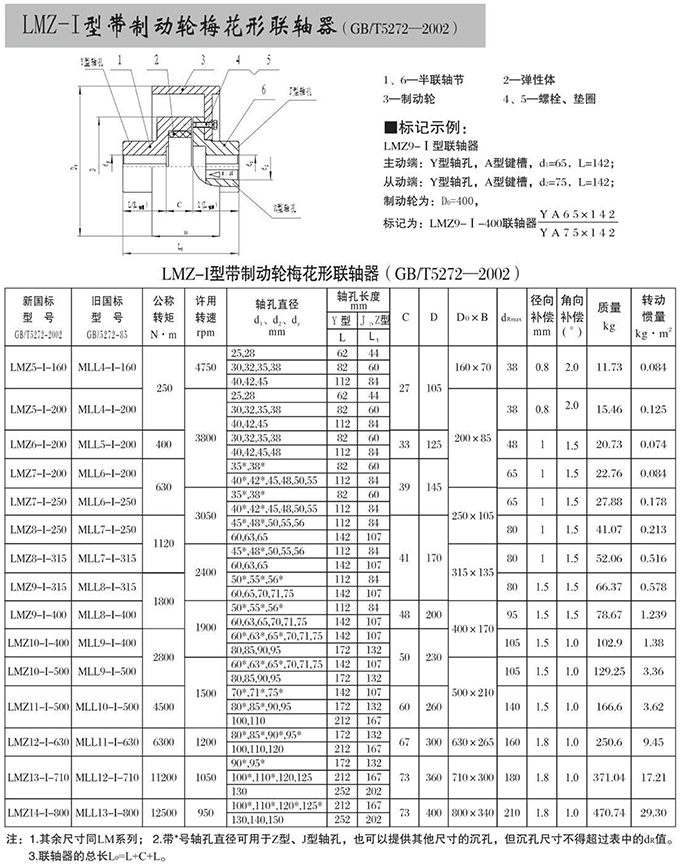 瑞安市寶德隆機械配件有限公司提供LMZ-I型帶制動輪梅花形聯軸器具有拆裝方便,快速安裝等特點,廣泛用于連接/固定輪轂孔和零件的軸,例如齒輪,錐齒輪,鏈輪,葉輪,凸輪,皮帶輪和飛輪等軸的聯結固定,咨詢電話:18906872378