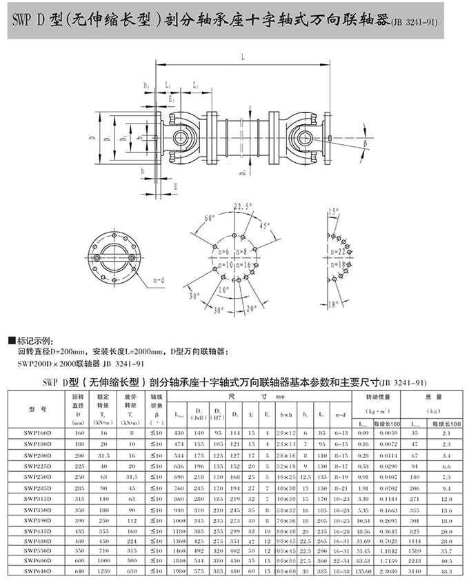 瑞安市寶德隆機(jī)械配件有限公司提供SWP D型(無(wú)伸縮長(zhǎng)型)部分軸承座十字軸式萬(wàn)向聯(lián)軸器具有拆裝方便,快速安裝等特點(diǎn),廣泛用于連接/固定輪轂孔和零件的軸,例如齒輪,錐齒輪,鏈輪,葉輪,凸輪,皮帶輪和飛輪等軸的聯(lián)結(jié)固定,咨詢(xún)電話:18906872378
