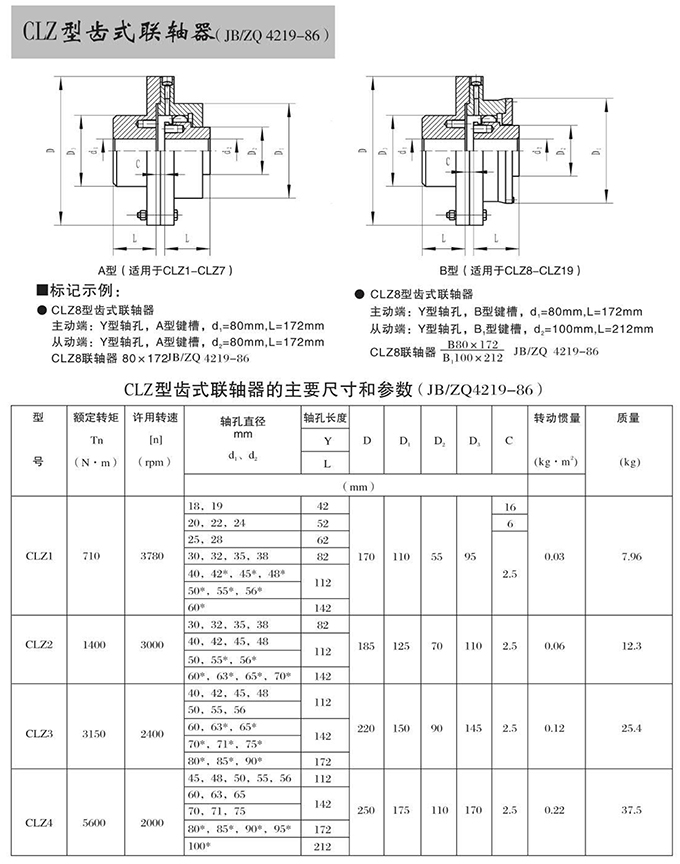 瑞安市寶德隆機(jī)械配件有限公司提供CLZ型齒式聯(lián)軸器具有拆裝方便,快速安裝等特點(diǎn),廣泛用于連接/固定輪轂孔和零件的軸,例如齒輪,錐齒輪,鏈輪,葉輪,凸輪,皮帶輪和飛輪等軸的聯(lián)結(jié)固定,咨詢電話:18906872378
